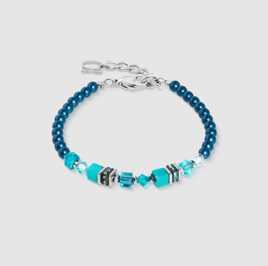 Coeur De Lion Silver Tone GeoCUBE® Iconic Aqua & Blue Bracelet 2838/30-2007